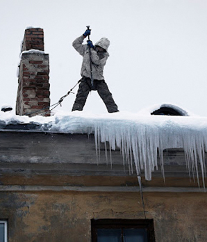 - Работы по очистке участка кровли с сосульками, удаление наледи и сброс на огражденный тротуар.